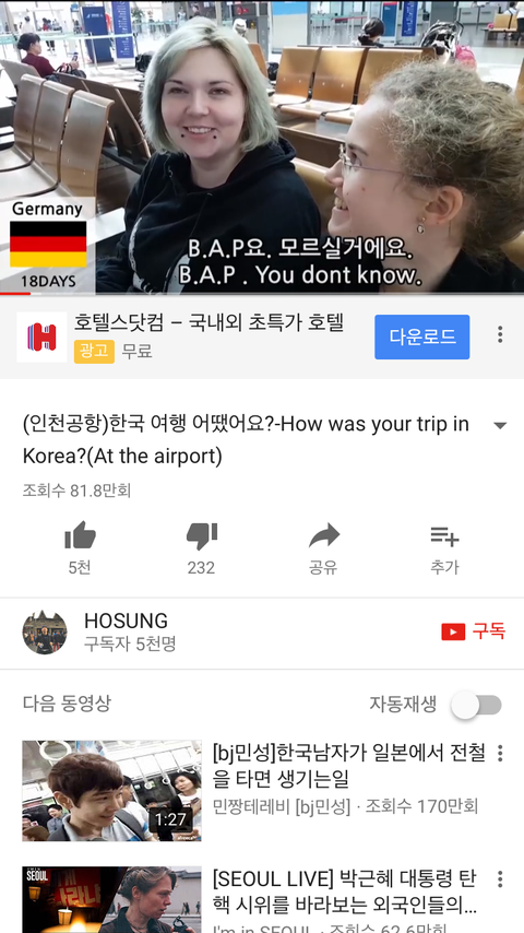 한국여행 어땠나요 인터뷰인데 초반에 bap팬이라고 하더라ㅋㅋㅋㅋㅋㅋ아무생각없이 보고있었는데 울애들 이름 나와서 깜짝 놀랐어ㅋㅋㅋㅋㅋㅋ