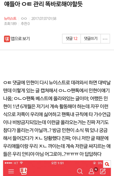 자기네들 욕 먹으니까 자기네 팬톡으로 쪼르르 가는 거 봐... 이러니까 여기 오지 말라고 하지...