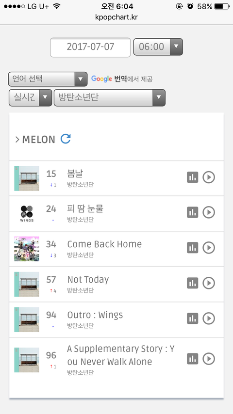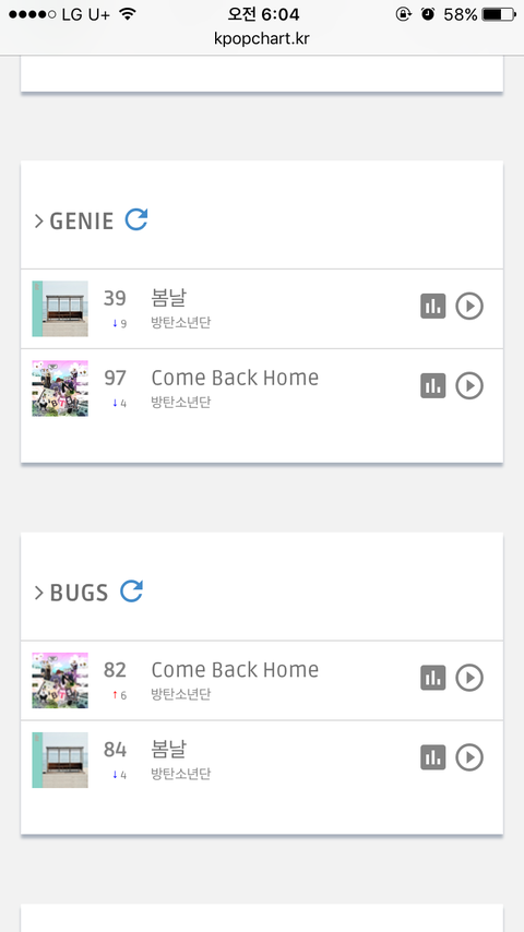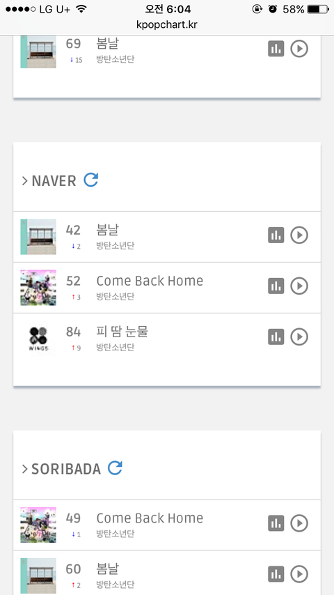 !6시 차트 왔엉!