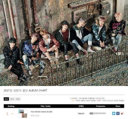2017 상반기 올킬"…방탄소년단, 韓 ·日 음악차트 휩쓸었다