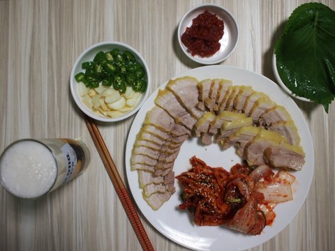 수육이 너무 먹고 싶었던 어느날은 혼자서 600그람을 삶아서 혼자 다 먹기도 하고, 김치는 마트에서 사왔어요 ㅎ