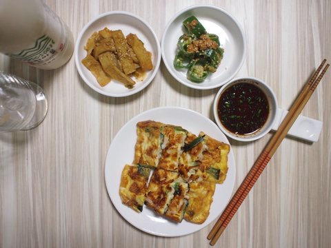 비오는날 파전에 막걸리는 진리입니다. 계란말이 팬을 활용하면 저렇게 파전 귀엽게 할 수 있어요. ㅎ 바삭바삭한 파전이 막걸리를 부르던 날이었습니다. 저 1조각에 딱 1잔씩 ㅎㅎ