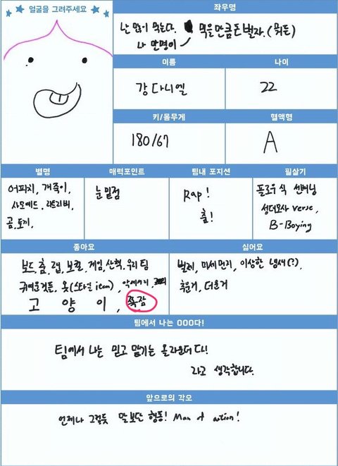 좋아하는것에 쪽잠이라고 적었던 강다니에르