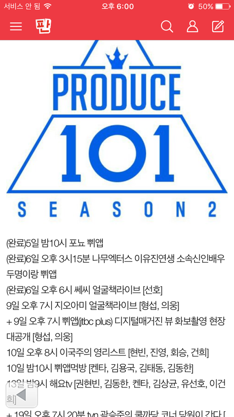 프로듀스 팬톡에 연생들 스케줄 나왔는데 엄청 많고 공중파도 많은데 정작 영민이는 일도 없어... 물들어올때 노저으래서 지금 인기 절정일 때 많이 나와야 더 인지도도 높아지는데.. 이러다가 영민이 잊혀지는거 아닌지 진짜 너무 두렵다..