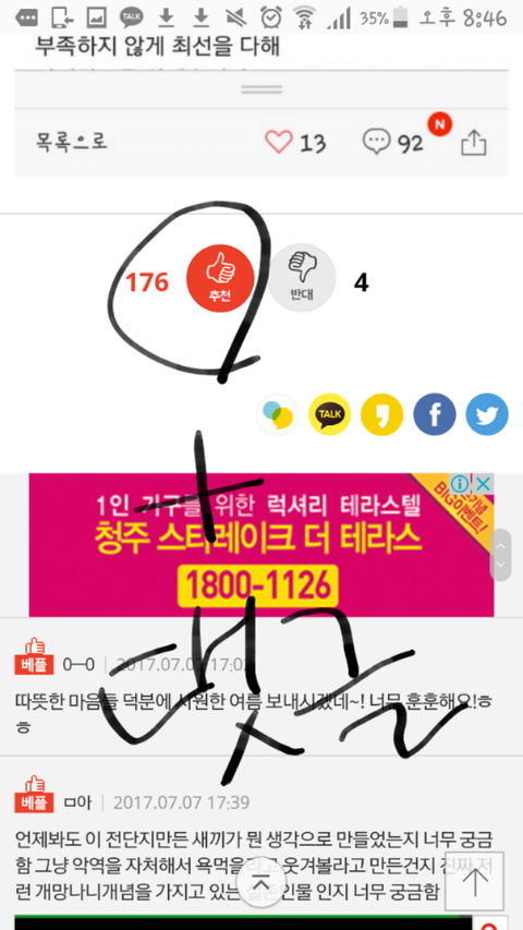 애들 순위보다 낮은 글 위주로 들어가서 좋아요랑 댓글 아무거나 달아줘 댓글을 많이달수록 좋아