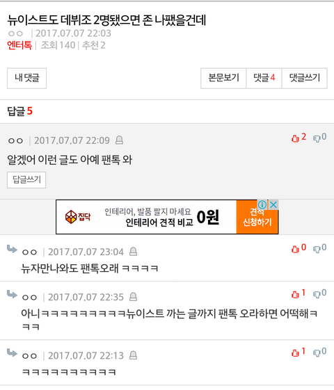 먹금 실천하고 있는데 이 와중에 댓글이 웃김. 아니 팬톡 오지 마.안받을래. ㅋㅋ