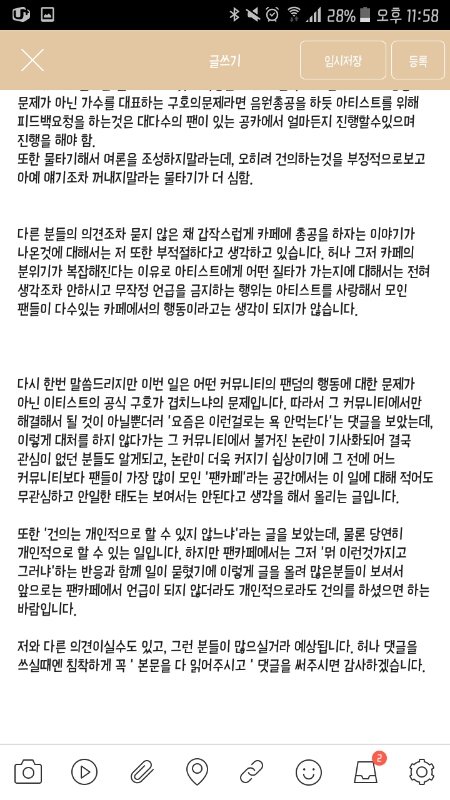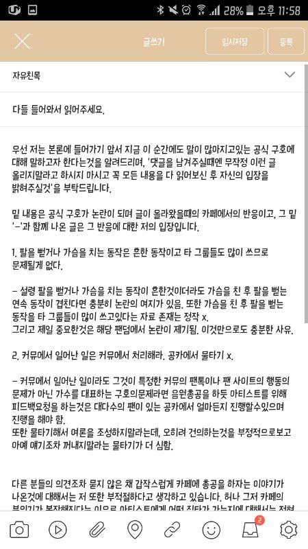아까 글 두번이나썼었는데 다들 올리라는 반응이어서 내용 추가했더니 시간이 많이 지체됐네 한번씩 읽어봐줘
