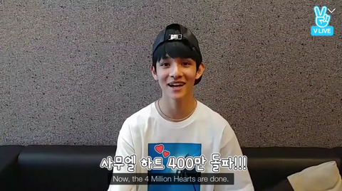 "400만 하트 돌파 기념으로 애교 서비스 한 번 해보도록 하겠습니다."