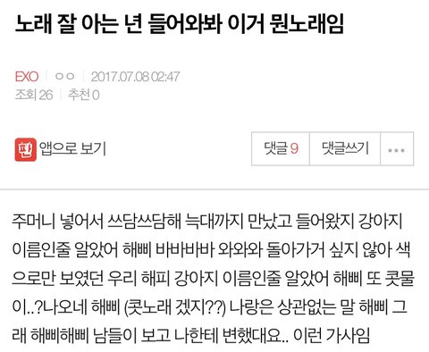 ㅈㄴ 이거보고 노래를 어떻게 맞춰 ㅋㅋㅋㅋㅋ근데 저 노래 지금 심심해서 들어봤는데 노래 통통 튀고 중독성 있네 ㅋㅋㅋㅋㅋㅋ 암튼 노래 맞춘거 개신기해 ㅋㅋㅋㅋㅋㅋㅋ 저거 글 보고 동요인줄 앎