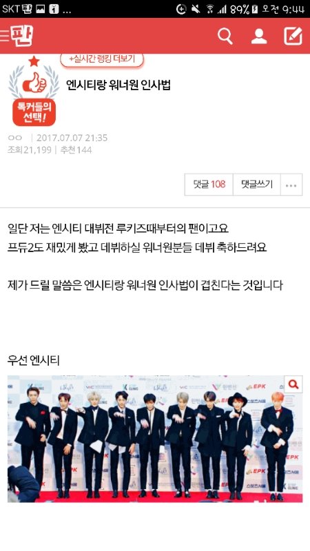 욕먹고 있잖아 워너원 팬중 모르는애 많고.. 올릴거면 움짤로 제대로 올리든지..갓1세븐이 먼저했다는 댓도 베플이고 이게 뭐야..반대가 더 많아.. 톡선 들어가봐.. ㅅㅁㅇㅈ