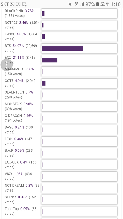 브이앰A 1시투표현황이얗ㅇㅎ BTS위치가 매번 바뀌니깐 1시간마다 직접 찾아서 투표해줘 이삐들♡♡♡ 빌볻으 때처럼 올라가야지♡♡♡