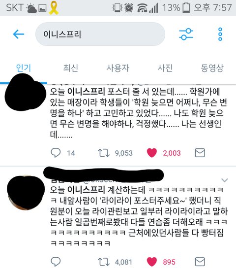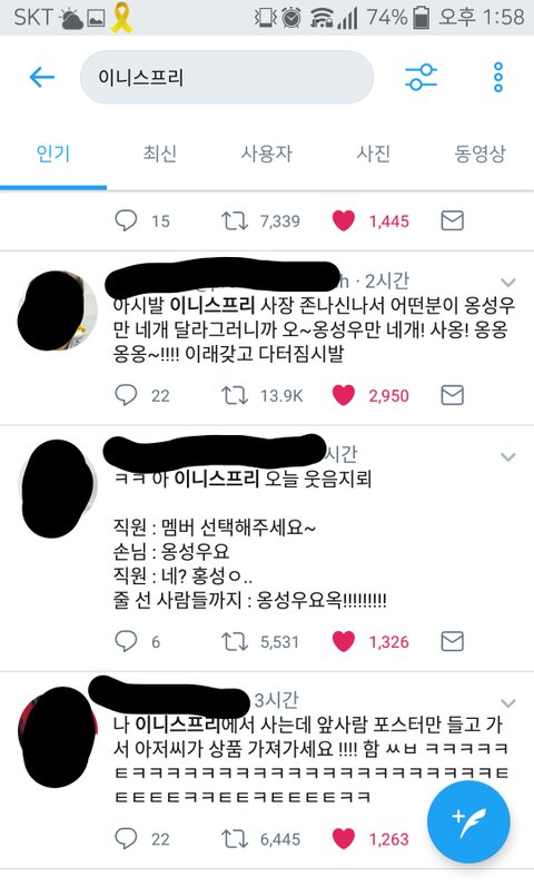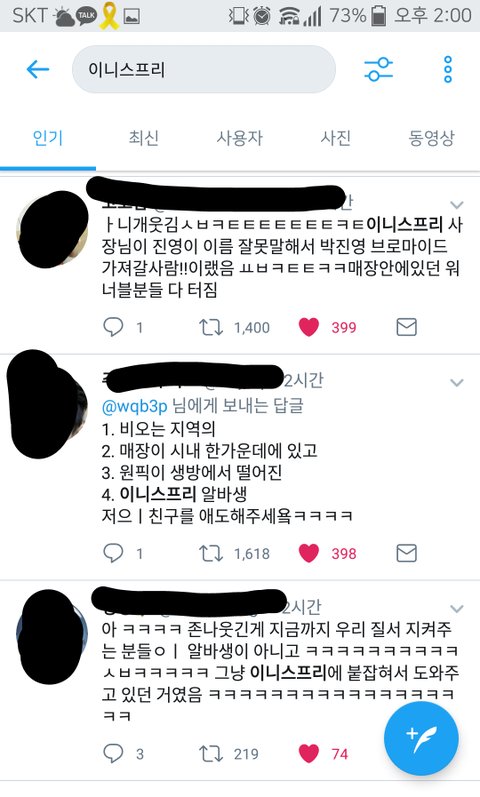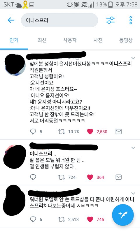 ㅋㅋㅋㅋㅋㅋㅋㅋㅋㅋㅋㅋㅋㅋㅋㅋㅋ 아 진짜 생각없이 짹들어갔다가 트윗순위에 이니스프리있길래 생각없이 눌렀는데 개터짐 첫번째부터 ㅋㅋㅋㅋㅋㅋㅋㅋㅋㅋㅋㅋㅋㅋㅋㅋㅋㅋㅋㅋㅋㅋㅋㅋㅋㅋㅋㅋㅋㅋㅋㅋㅋㅋㅋ
