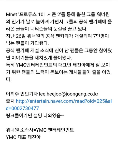 워너원 공식 팬카페에 태진아 사진만 올라오는 이유
