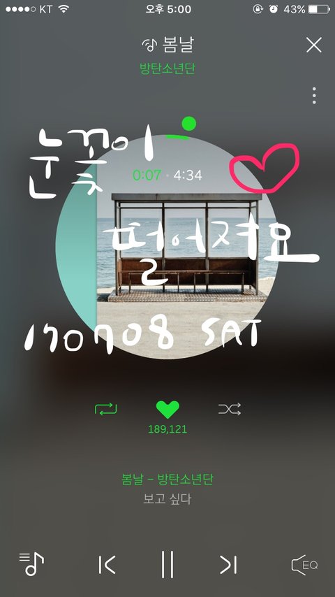 스밍리스트 첫 곡인 봄날 누르기!