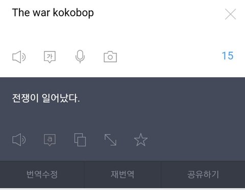번역기야 지금 모라고 핸니????다시말해봐ㅅㅂ 전쟁이 일어났다고?
