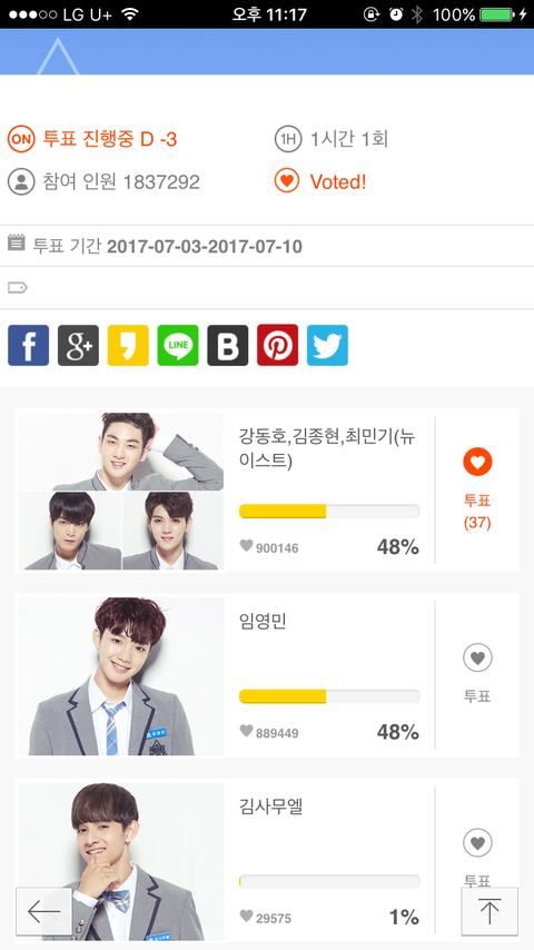 스밍인증!! 투표 인증!!