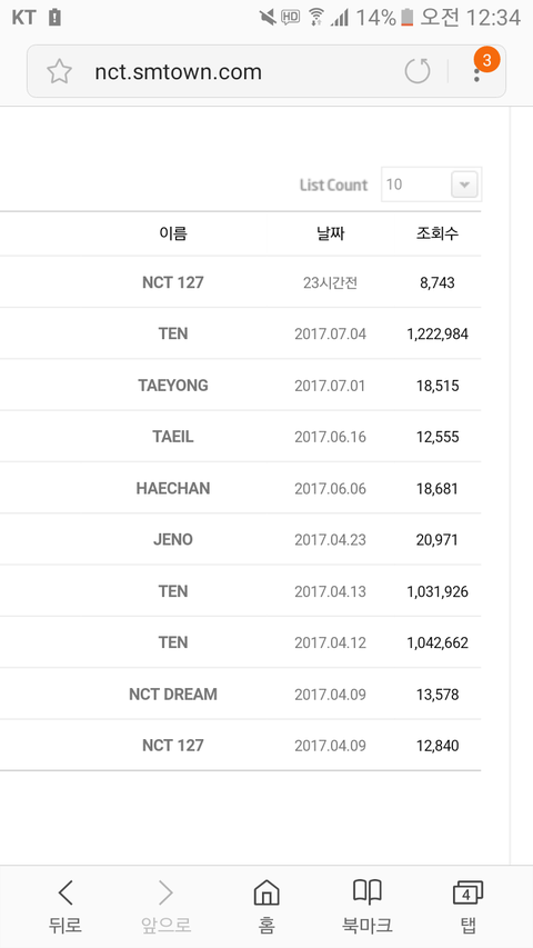 스엠 공식 사이트에 엔시티 from star 텐 게시물 조회수봐봐 ㄷ
