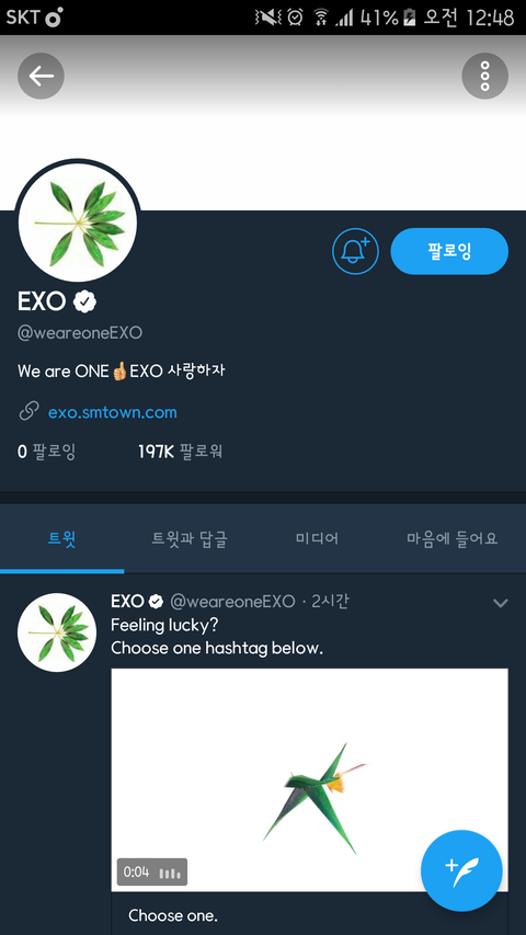 공식계정 만든지24시간도 안되서 20만각