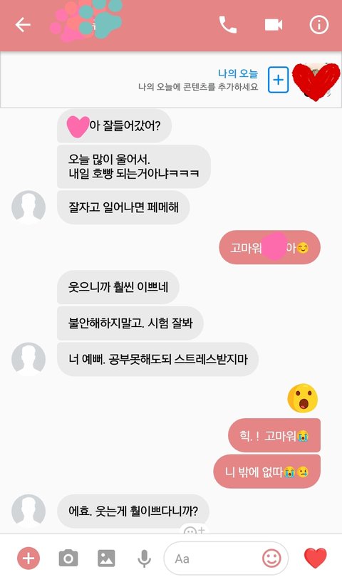 내가 시험때문에 불안하다고 우니까 안아서 달래주고 초콜렛 사주고...그랬거든?