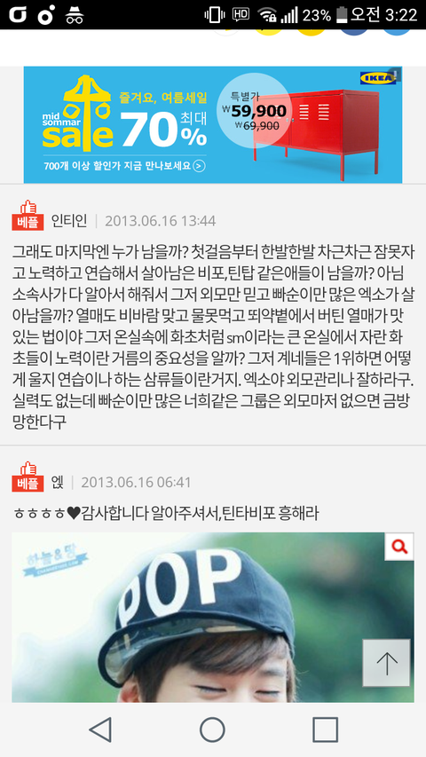 글 내용: 틴ㅌ 비ㅇㅇㅇㅍ 같은애들 불쌍하다 엑소는 대형소속사에 빽이 있어서 1년에 한번만 나와도 되는데 쟤네는 돈벌려고 1년에 몇번씩 나와야되고 엑소는 1년에 한번 나오니 연습도 조금해도 될텐데 불쌍하다