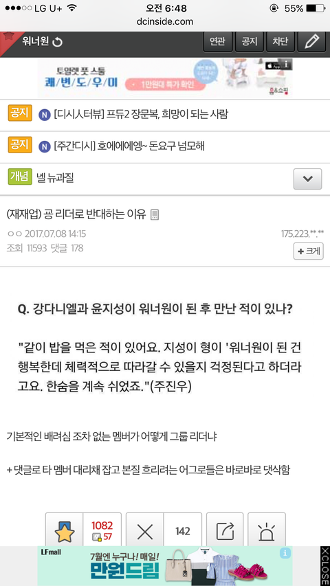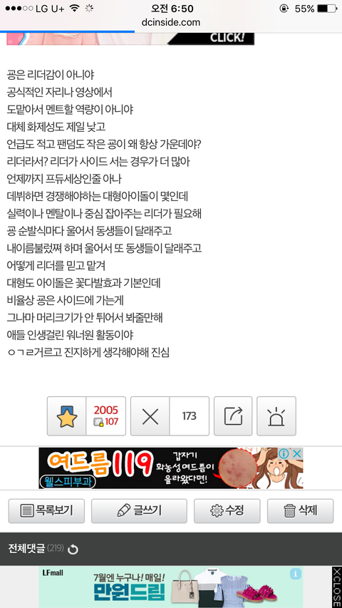 근데도 꾸준하게 윤지성 까는 글만 올라오고 버젓이 개념을 차지하고 있음