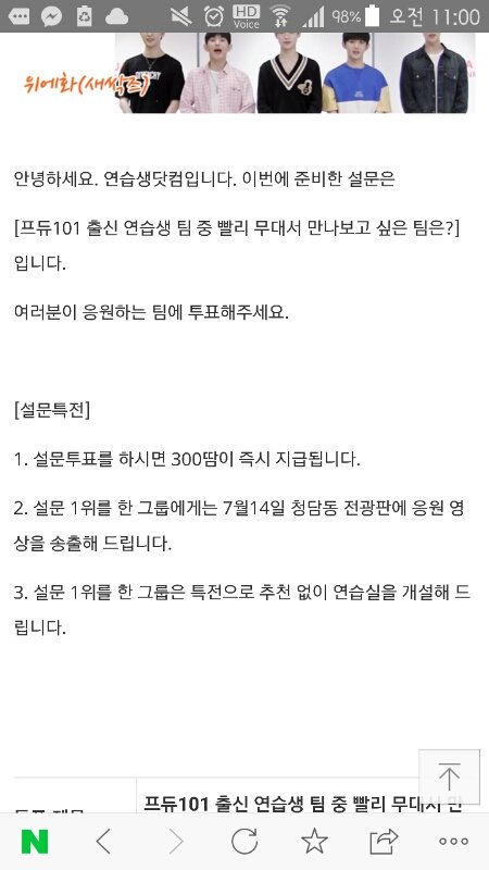 지금 몇표차이로 2등이니깐 투표 좀 해주십시오