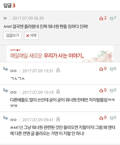 ㅈㄴ ㅆㅂ 별것도 아닌걸로 쳐 써 서 베톡가고 있어! 그리고 누가 도배를 했는데? 다 니들 글이잖아! ㅂㅅ아! ㅈㄹ도 ㅈㄹ이다! ㅁㅊ년들이!