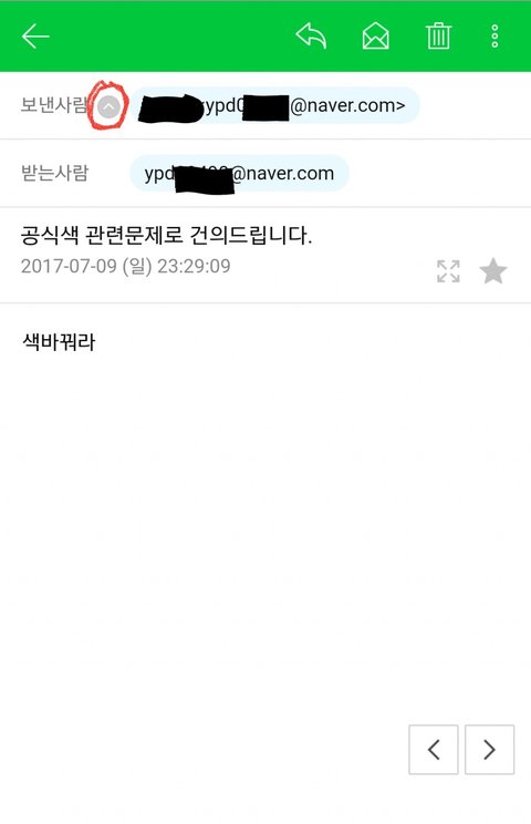 메일 제목: 공식색 관련 문제로 건의드립니다