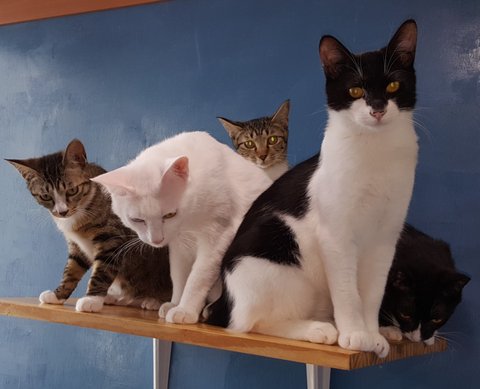 흰색 수컷 고양이를 제외한 나머지 세 마리가 입양대상 성묘들입니다.