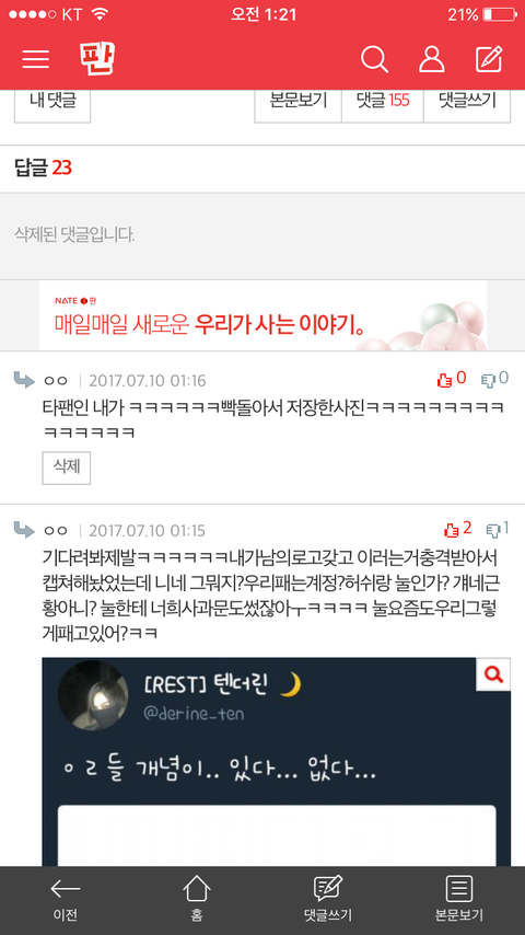 짹끌올하길래나도끌올했더니 댓삭함 ㅅㅂ