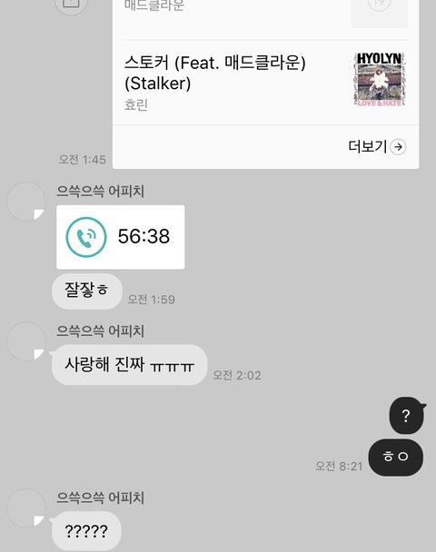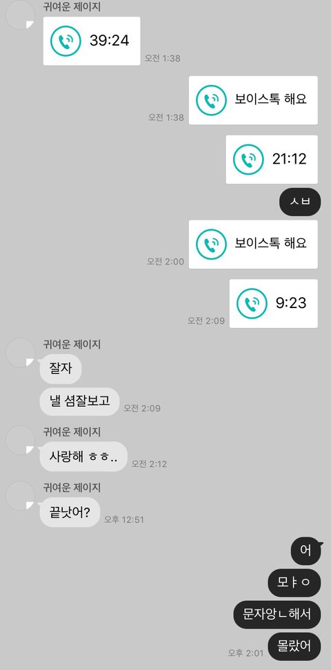 ㅋㅋㅋㅋㅋㅋ내가 맨날 보이스톡하다가 잠드는데 혼자 끊고 사랑한대ㅠㅠㅠ 너무 귀엽다 아파트 뿌시고싶어