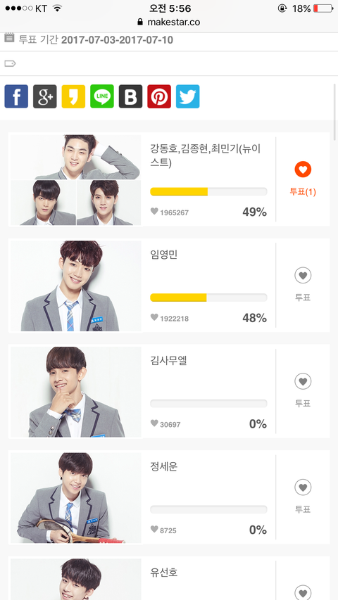 방심하다간 따라잡힐거야 ..!ㅠㅠㅠㅠㅠ투표하자ㅠㅠㅠ