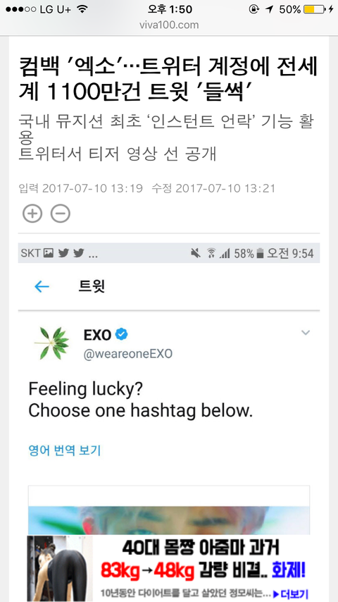 컴백 '엑소' 트위터 계정에 전세계 1100만건 트윗 '들썩'