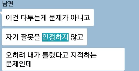 그랬더니 남편이 지난번 일도 그렇고 지금도 그렇고 조언과 충고를 못듣고 인정과 사과를 못하는 사람이기에 저랑 못살겠다는 말을 하더라고요.