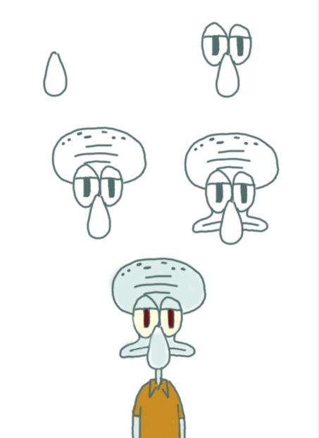 이제 머리통을 그려쥬는데 쫌만 뚱실하게 오바해서 그려줘 그게 바로 징징이다