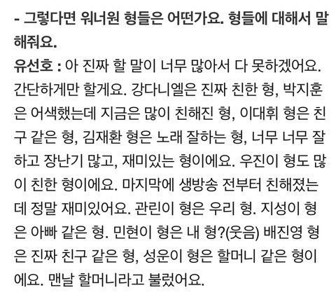 ✔️ 단체 - 프로듀스 101 연습생 출신 서노 인터뷰 중 워너원 언급