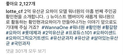 ✔️ 민현 - 로떼 제과 공식 인별그램 유산균 샌드 광고 포토 업로드