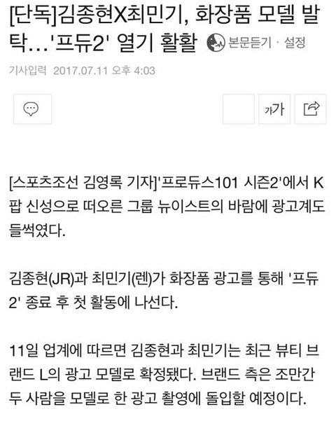 김종현 최민기 화장품 모델 발탁