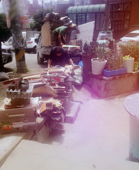신문, 박스, 종이, 폐지부터 정리하고 싣고 있습니다ㅋㅋㅋㅋ