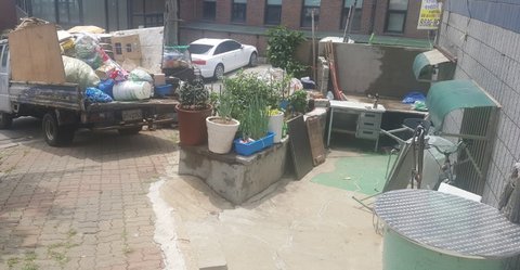계속 옮기고 뭐리이 끝도 없이 나와 폐지 다 싣고, 캔 병 페트병 고물 차에 싣는중.... 아하하하하