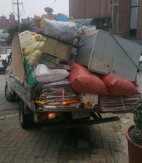1톤트럭에 바리바리 아주 산처럼 쌓임ㅠㅠ