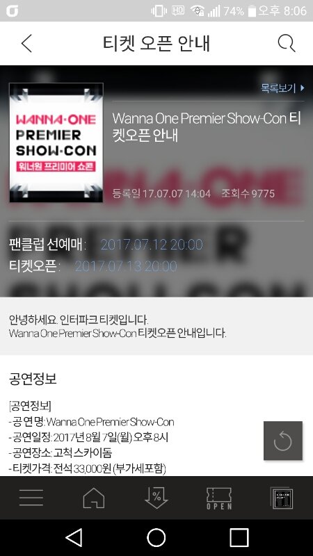 티켓 오픈 안내 창도 바뀜