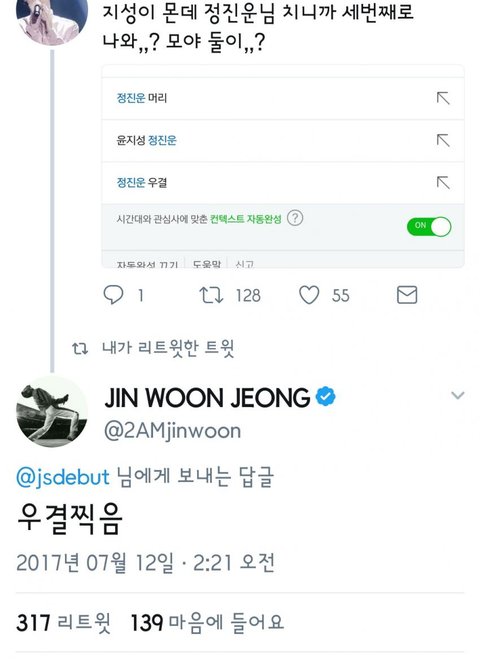 이렇게 썼는데 정진운님이 댓글담ㅋㅋㅋㅋㅋㅋㅋㅋㅋㅋㅋㅋㅋㅋㅋㅋㅋㅋㅋㅋㅋㅋㅋㅋㅋㅋㅋㅋㅋㅋㅋㅋㅋㅋㅋㅋㅋㅋㅌㅋㅋㅋㅋㅌㅋㅌㅋㅋㅌㅌㅋ둘이 내적친분 100..ㅎ