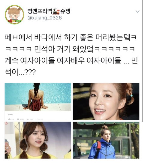 진짜네 여자배우랑 여돌사이에 유일한 민석이ㅋㅋㅋㅋㅋ