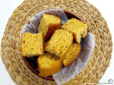 발효가 필요없는 퀵브레드이면서 옥수수가루가 많이 들어가기 때문에 약간은 거칠지만 그 투박한 맛이 매력인 빵이라고나 할까요.