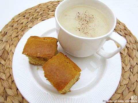 고소하면서, 살짝 단 맛이 돌고, 촉촉하면서도 입자가 거칠어서 빵만 먹다보면 목이 메이는 콘브레드입니다.