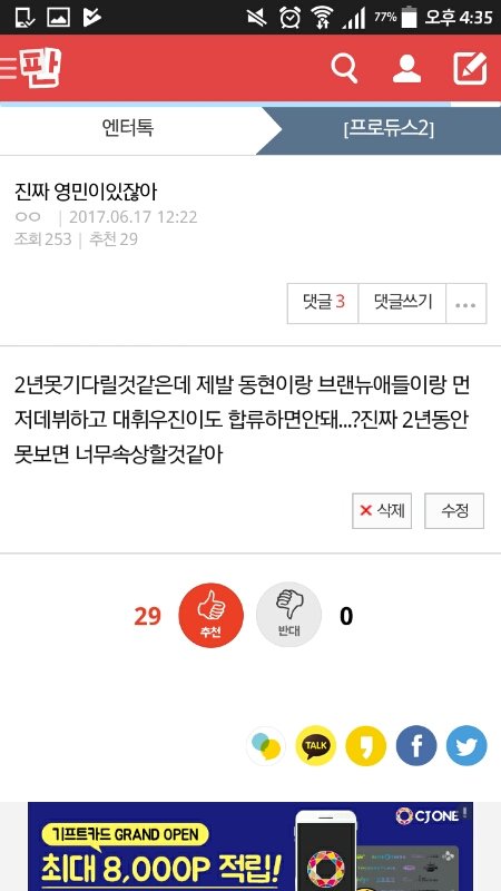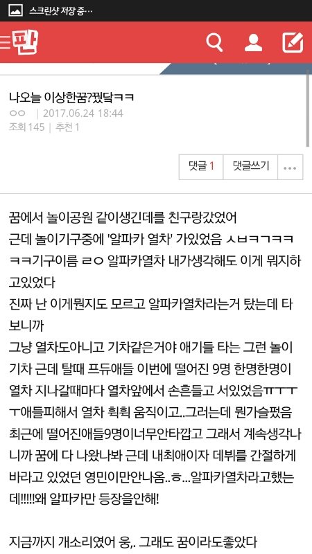 내 꿈이 좀 개소리긴한데.....알파카열차이거 영민이데뷔할거라는 예지몽이였어!!!조아!!!!