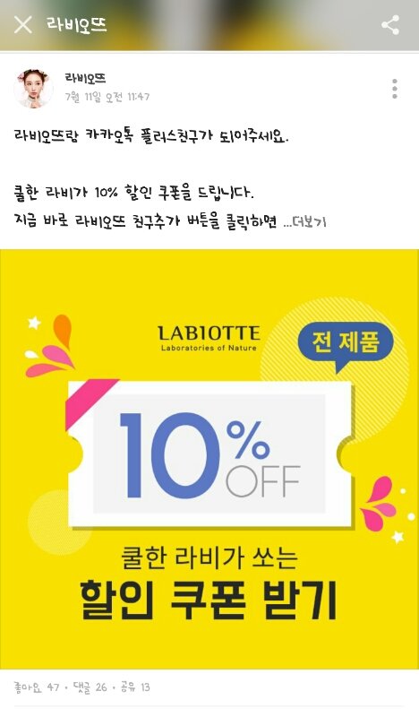 플러스 친구 맺으면 10%할인쿠폰주더라구