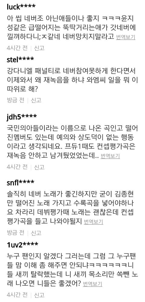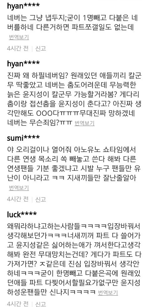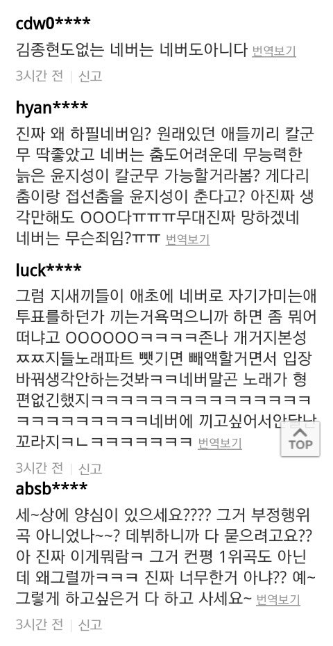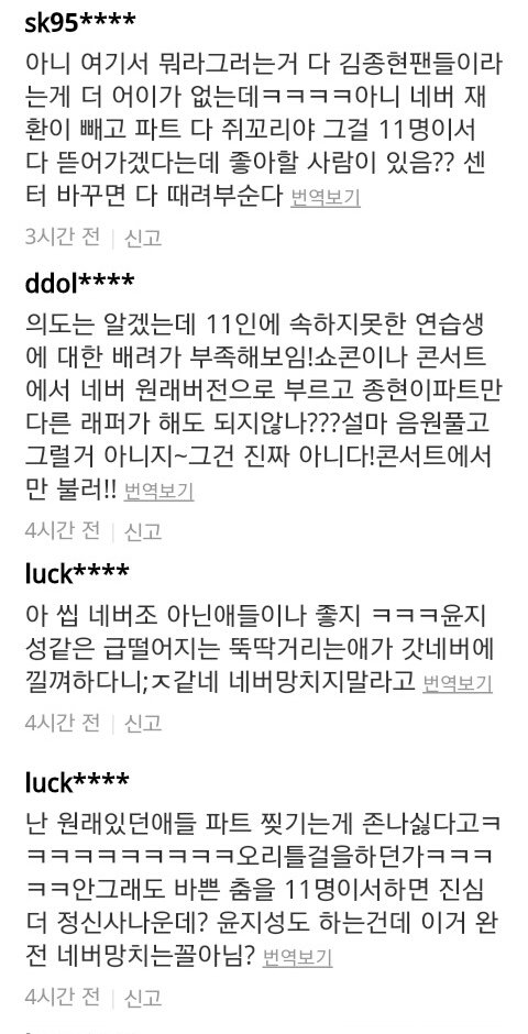 김종현이 없는데 왜 하냐 분탕질하고 다른멤버들 비하함