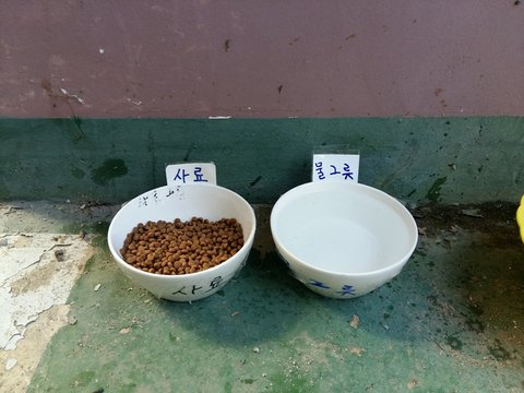 물그릇은 누가 그렇게도 부지런하게 치우거나 물그릇에 다른 음식물을 넣어두기 바빴어요 ㅠㅠ